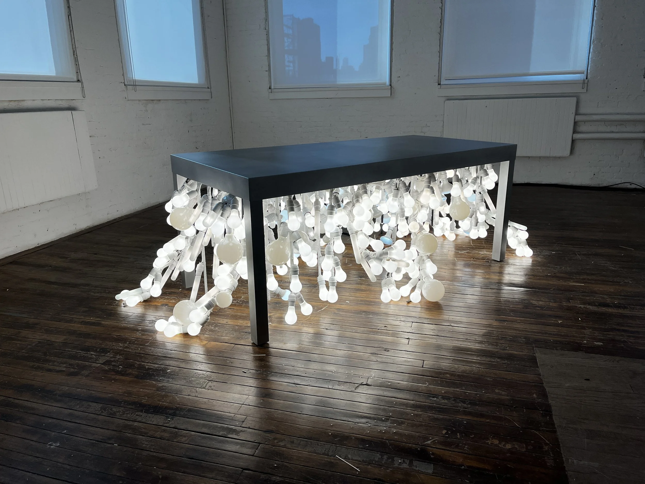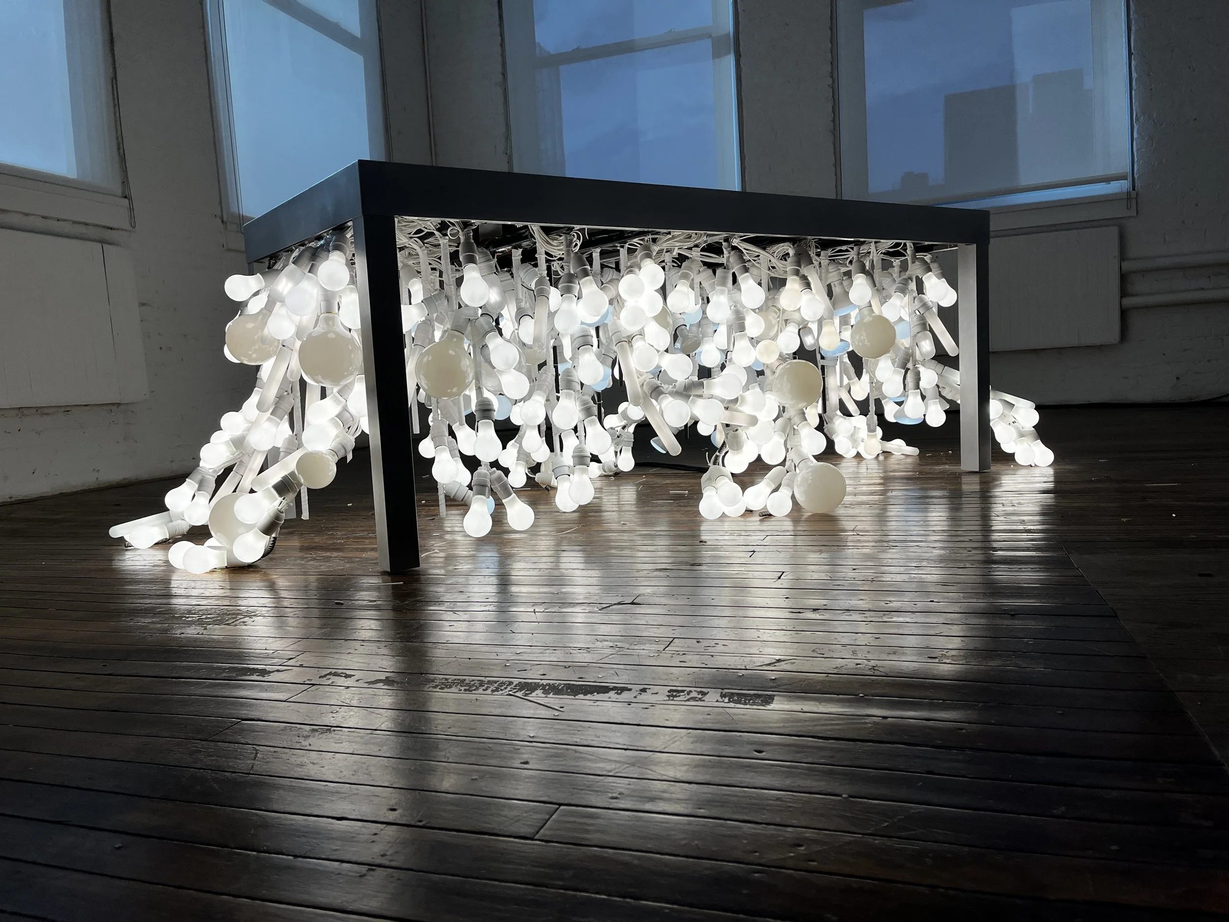 Aluminum, steel, electrical wiring, LED lights, and cable
